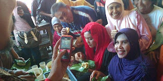 Kedatangan Rieke ke pasar menjadi pusat perhatian pedagang dan pengunjung pasar. Bahkan, Rieke pun membagikan nasi TO yang dibelinya kepada warga dan tukang ojek yang mangkal di pasar.