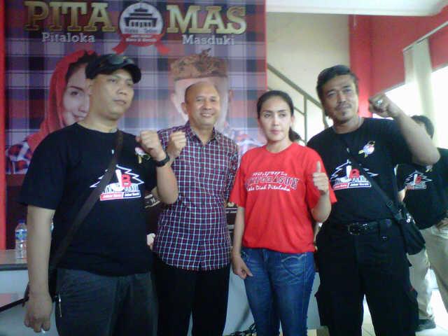 Puluhan relawan yang menamakan diri Relawan PITA MAS (Pitaloka-Masduki) sedang mempersiapkan kedatangan pasangan Cagub dan Cawagub Jabar Rieke Diah Pitaloka-Teten Masduki di Kantor Relawan PITA MAS dan peresmian, Mall CTC (Ruko Kuning) Jalan Raya Cikarang-Cibarusah, Kabupaten Bekasi, Senin (10/12) pagi. Mereka memasang ratusan banner dan puluhan baligo di sekitar Mall CTC.
