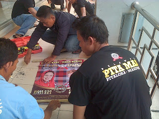 Puluhan relawan yang menamakan diri Relawan PITA MAS (Rieke Diah Pitaloka-Teten Masduki) sedang mempersiapkan kedatangan pasangan Cagub dan Cawagub Jabar Rieke Diah Pitaloka-Teten Masduki di Kantor Relawan PITA MAS, Mall CTC (Ruko Kuning) Jalan Raya Cikarang-Cibarusah, Kabupaten Bekasi, Senin (10/12) pagi. Mereka memasang ratusan banner dan puluhan baligo di sekitar Mall CTC.