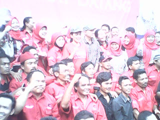 Hal ini sempat membuat kewalahan para pengurus dan tak tanggung - tanggung, Ketua DPC PDI Perjuangan Karyawan Faturahman terjun langsung mengendalikan para kader yang berebut untuk foto bersama di Jalan Tegar Beriman Cibinong, Selasa (11/12/2012).