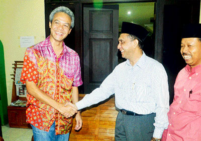 SEMARANG - Calon gubernur dari PDI Perjuangan Ganjar Pranowo merupakan satu-satunya calon yang berasal dari keluarga besar Nahdlatul Ulama. Pengurus Wilayah Nahdlatul Ulama (PWNU) Jateng berharap, jika terpilih, Ganjar menjadi gubernur yang benar-benar mengabdi dan melayani masyarakat. Hal itu dikatakan Ketua PWNU Jateng M Adnan saat dikunjungi Ganjar, di kantor PWNU Jalan Dr Cipto Semarang, Kamis (14/3).