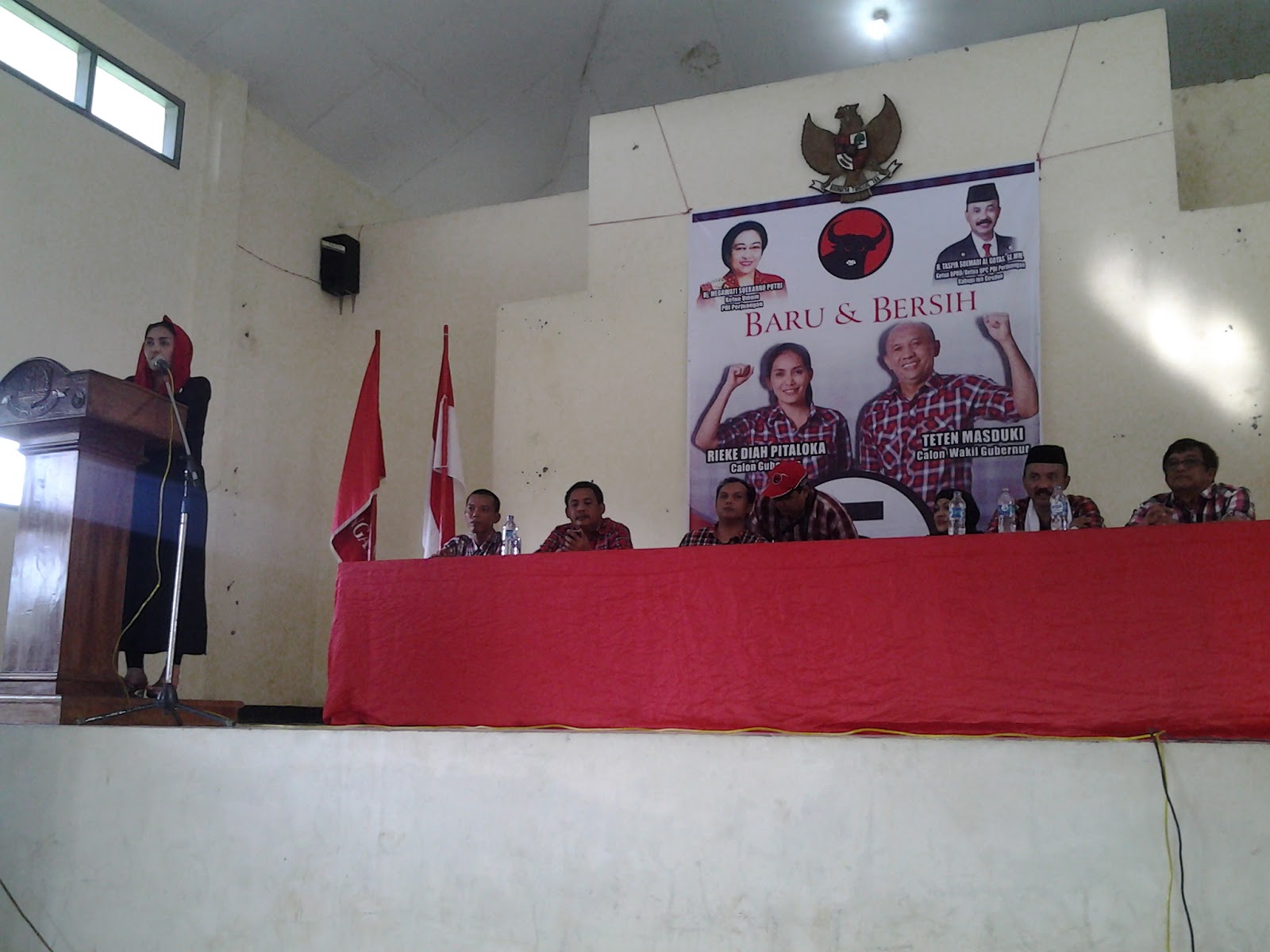 Rieke Diah Pitaloka Menghadiri Training Of Trainer (TOT) saksi di gedung blk jalan pangeran antasari plumbon kab. Cirebon, Rieke orasi polotik untuk mengajak rakyat berjuang bersama untuk jawa barat yang bersih dari korupsi.
